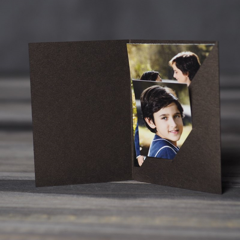 la entrega elegante de fotos de carnet. Fabricada en cartulina de calidad con acabado