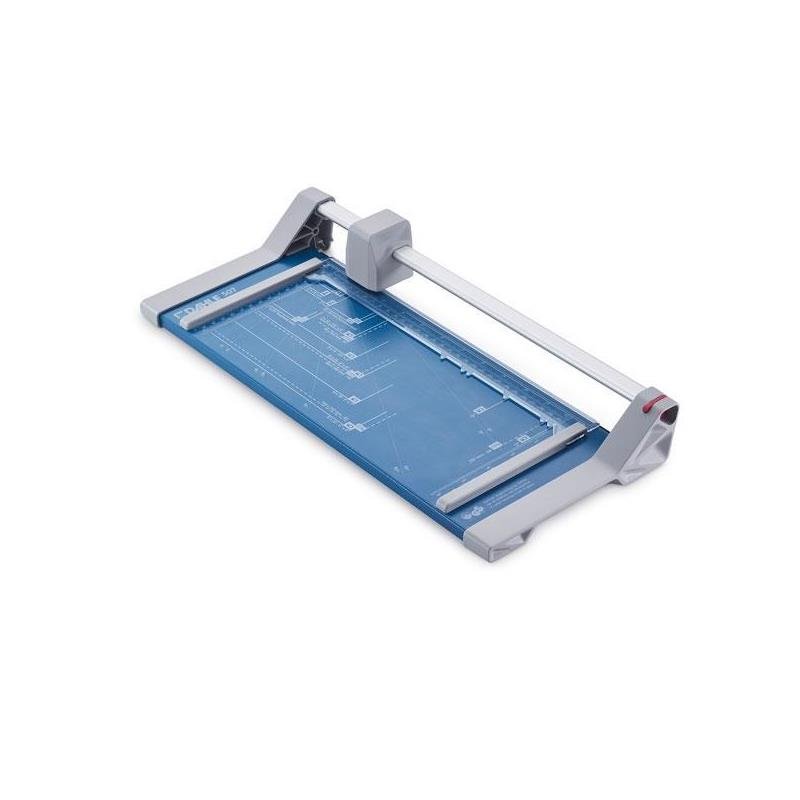 Cizalla de rodillo con cuchilla de acero circular, cabezal de plastico cerrado y cuchilla inferior rectificada para cortes precisos. Su longitud de corte es de 460 mm, su capacidad de 0,6 mm y el prensado automatico. Medidas: 58 x 21,1 cm.