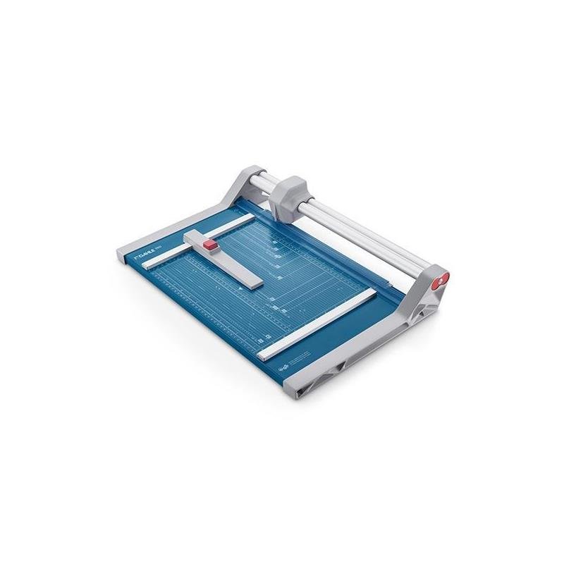 982812323La Dahle 550 es una cizalla de rodillo de alta precisión, diseñada para un uso intensivo en oficinas, estudios de diseño y centros de impresión. Su robustez y su sistema de corte autoafilado la convierten en la herramienta perfecta para trabajos que requieren un acabado impecable en formato A4.
