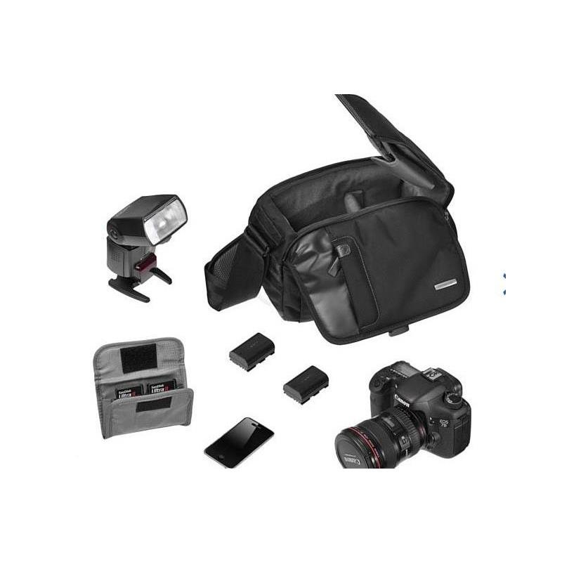 transportar de forma segura una cámara réflex o mirrorless con objetivo montado y pequeños