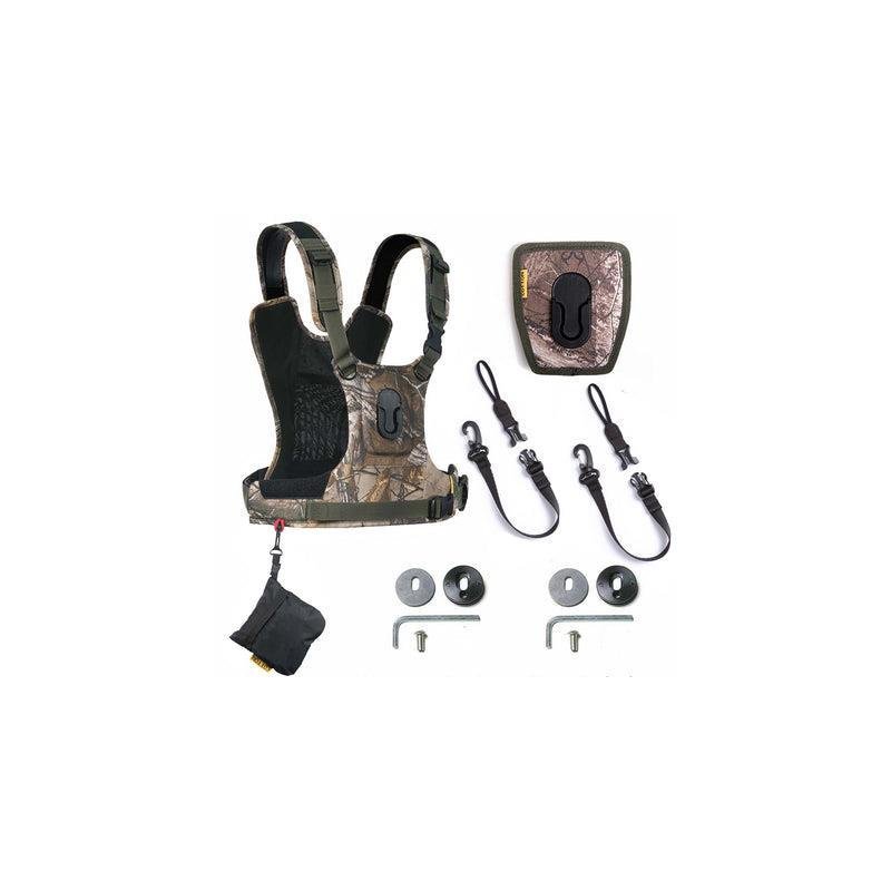 El Cotton Carrier G3 Camuflaje es un arnés profesional para llevar 2 cámaras de forma segura, equilibrada y cómoda, ideal para fotografía de naturaleza, fauna, deportes o acción. Su acabado en camuflaje permite una mayor discreción en entornos naturales. El diseño ergonómico reparte el peso entre hombros y espalda para reducir la fatiga en largas sesiones.