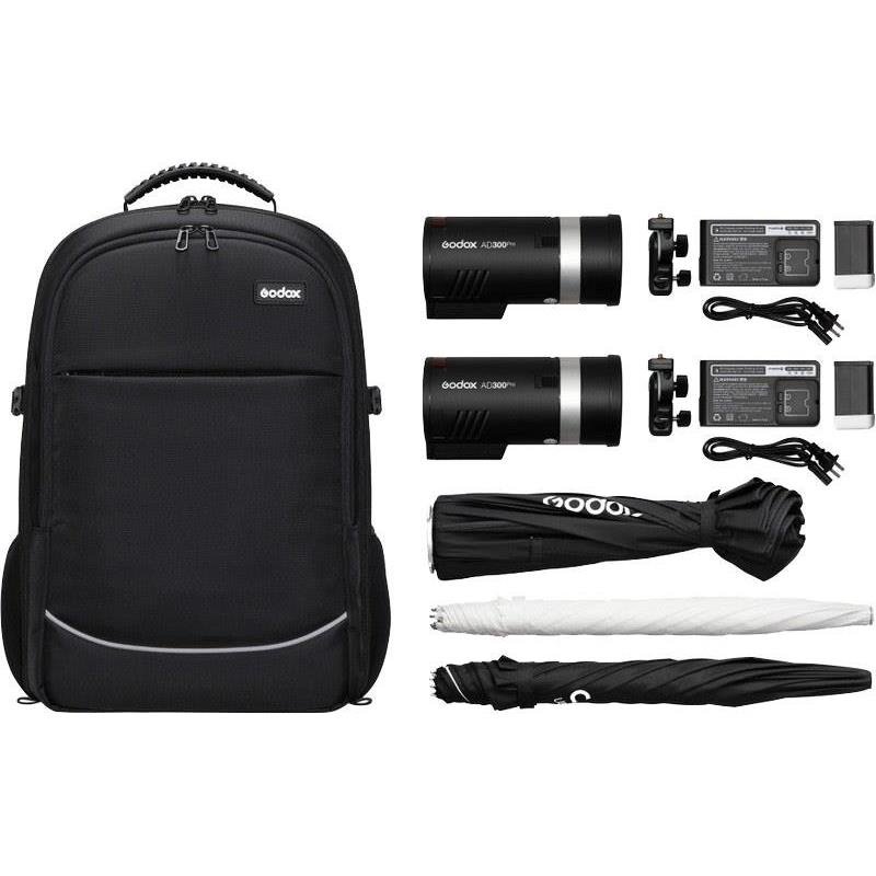 El Godox AD300 Pro TTL Duo Kit es la opción clara si buscas montar un sistema portátil de iluminación con prestaciones de estudio. Cada unidad AD300 Pro entrega 300 Ws con batería integrada, ofrece control TTL y HSS hasta 1/8000 s, y una lámpara modeladora bicolor para previsualizar la luz. Esto permite trabajar en bodas, locaciones, exteriores y sesiones rápidas sin depender de cableado ni generadores