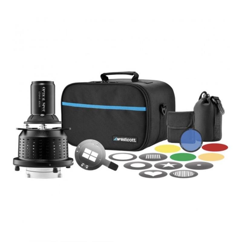 ?? CONTENIDO DEL KIT: Carcasa Optical Spot, Lente 150mm f/3.5, Montura para Lente, Estuche de transporte, 5 Geles de colores, 5 Gobos variados, Montura para Gobos y Montura para Geles.