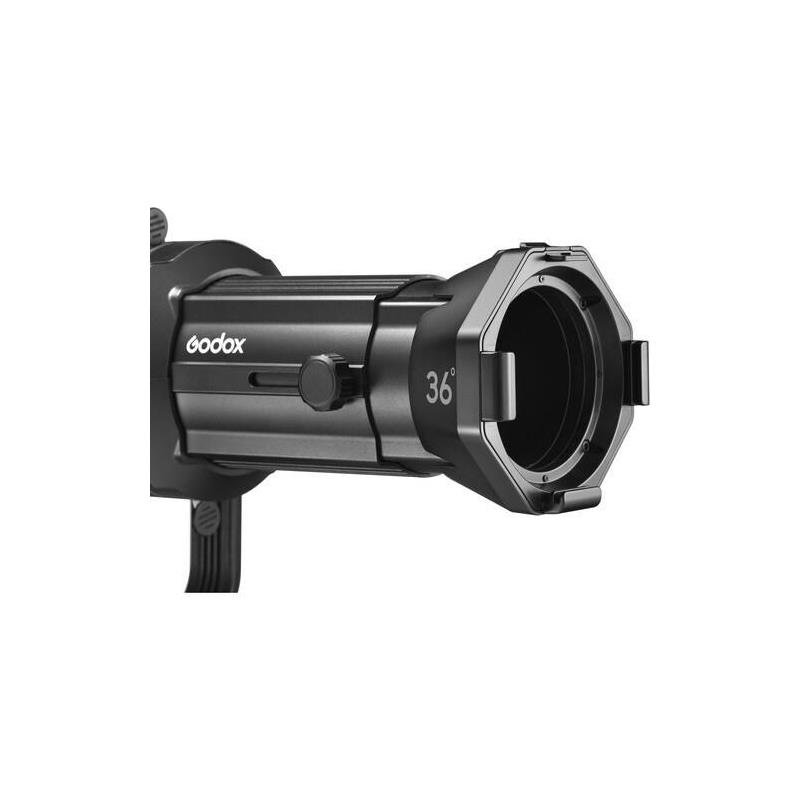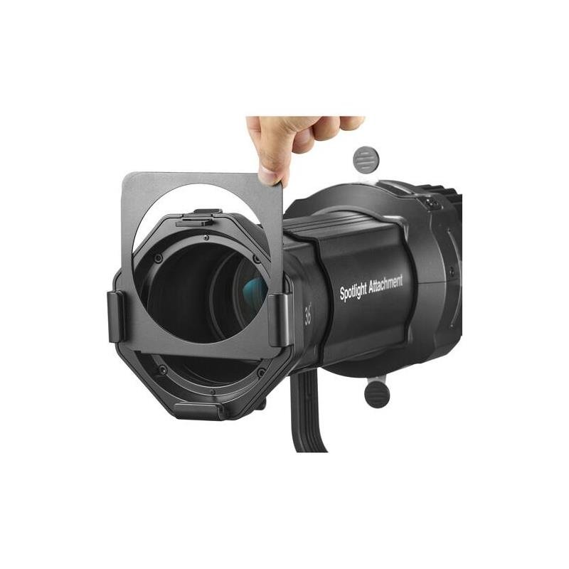 El Godox VSA-36K convierte tu foco LED COB en una herramienta de precisión óptica. Al igual que sus hermanos de serie, elimina la luz dispersa y ofrece un control total sobre la forma y la textura de la iluminación, pero con una óptica optimizada para abrir el ángulo sin distorsionar los bordes.