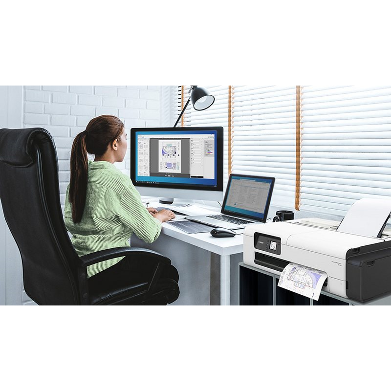 Consigue impresiones profesionales con la imagePROGRAF TC-20 de Canon, una impresora de sobremesa de 24" fácil de usar para oficinas, tiendas, centros educativos o incluso para trabajar desde casa.Funcionamiento sencilloSimplifica la impresión con este dispositivo de acceso frontal. El soporte de bobina sin eje facilita la configuración del papel, mientras que el alimentador de hojas automático integrado favorece la impresión continua sin necesidad de cambiar el papel.Cumple tus objetivos de sostenibilidad gracias al uso de botellas de tinta de plástico reciclable de 70 ml con un embalaje reducido y la calificación EPEAT Gold1 de bajo consumo eléctrico.