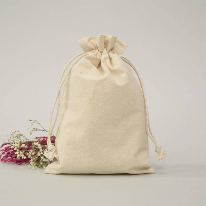 Esta bolsa de tela con cordón es perfecta para presentar tus productos o regalos de forma original y con un toque artesanal. Su estilo minimalista y natural encaja con todo tipo de temáticas y decoraciones. Además, puedes personalizarla con vinilo, serigrafía o bordado para darle un toque único.