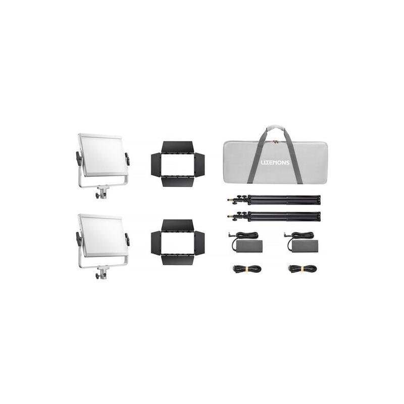 Transforma tus rodajes con el Kit Godox Litemons LP600 RGB. Incluye dos paneles full-color, control DMX y app inalámbrica, geles de color, soportes y cables de alimentación para una iluminación profesional.