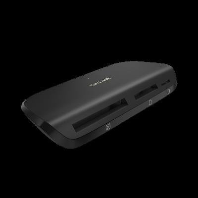 El lector y grabador multitarjetas SanDisk ImageMate® PRO USB-C™ funciona con tarjetas SD™ y microSD™ (UHS-II, UHS-I y no UHS), así como con tarjetas CompactFlash® (hasta UDMA 7). Ofrece un rendimiento elevado, con velocidades de hasta 312 MB/s en tarjetas SD y microSD, y de hasta 160 MB/s en tarjetas CompactFlash.1 Además, este lector tiene una interfaz USB 3.0 capaz de mover contenido hasta diez veces más rápido que con una interfaz USB 2.01, para que puedas acceder a tus fotos rápidamente. También es compatible con versiones anteriores, como USB 2.0, lo que lo convierte en la opción ideal para crear un flujo de trabajo más eficaz.