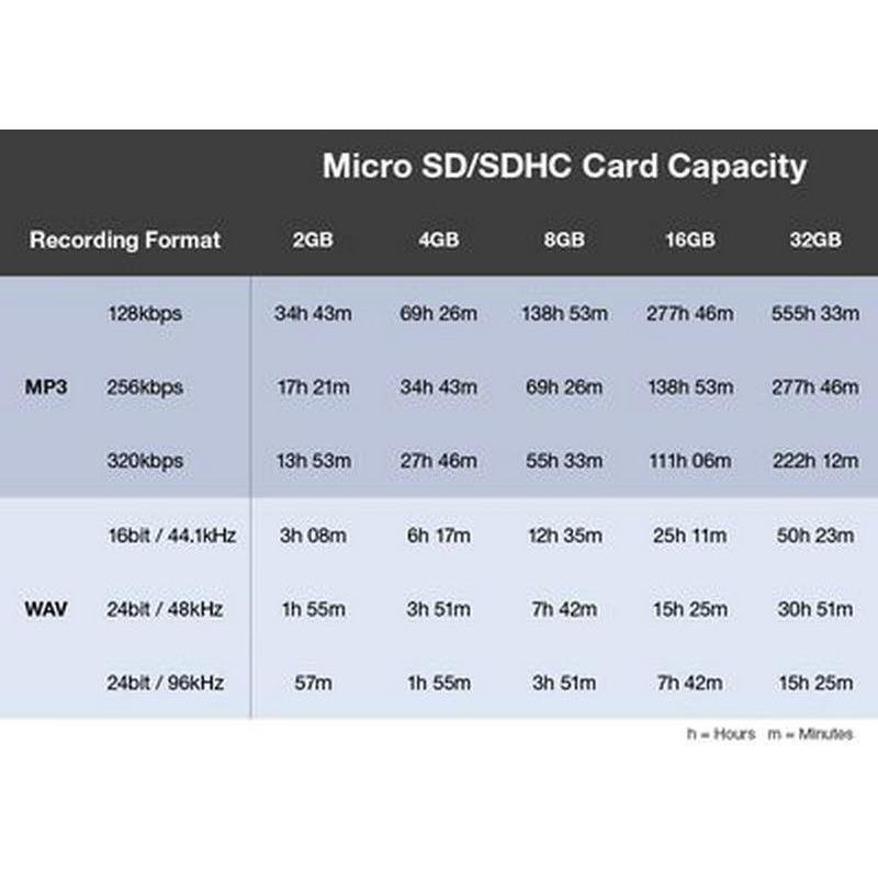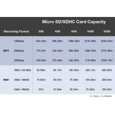 en 48 kHz / 32-bit float, ofreciendo hasta aproximadamente 14 horas de grabación