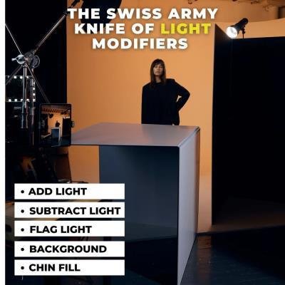 - Lado Negro (Bandera): Superficie negra profunda para "cortar" la luz (Negative Fill), aumentar el contraste dramático y absorber reflejos indeseados.