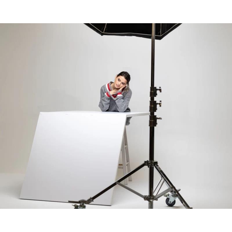 El Pack Duo V-Flat 2.0 multiplica tus posibilidades creativas por diez. Tener dos V-Flats no es un lujo, es una necesidad técnica para controlar la luz en 360 grados. Con este kit, puedes encerrar al modelo para una sustracción total de luz (Negative Fill) o crear una "caja de luz" gigante blanca para una suavidad extrema.