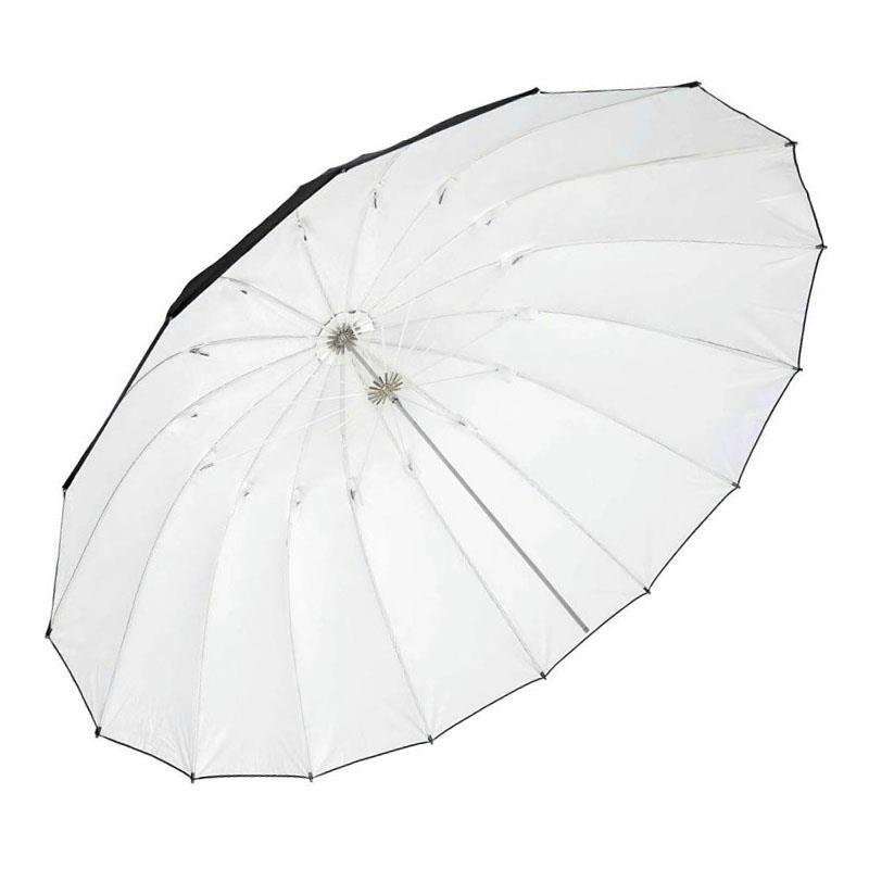 Modificador de luz básico fácil de usar, de alta eficacia y grandes dimensiones. Este polivalente paraguas traslúcido de uso indiferente para fotografía o video tiene una forma para más profunda que un paraguas tradicional, proporcionando un reparto de luz más direccional, Además gracias a su amplias dimensiones permite iluminar en tomas de cuerpo entero.