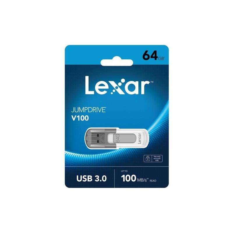 982812323Almacenamiento Fiable y Rápido para tu Día a Día: La memoria USB Lexar JumpDrive V100 de 64GB con tecnología USB 3.0 es la opción ideal para almacenar y transferir todos tus archivos esenciales de forma rápida y eficiente. Su diseño clásico incluye una tapa protectora que mantiene el conector USB a salvo del polvo y la suciedad garantizando una larga vida útil para tus datos más valiosos.