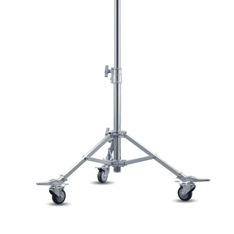 Fabricado en acero inoxidable de alta densidad, este pie de estudio está preparado para soportar luminarias de gran peso como la serie KNOWLED de Godox o focos de cine profesional. Su diseño de perfil bajo en la base permite desplazarlo con facilidad bajo mesas o cerca de otros soportes, optimizando el espacio de trabajo en estudios de fotografía o estudios de rodaje publicitario.