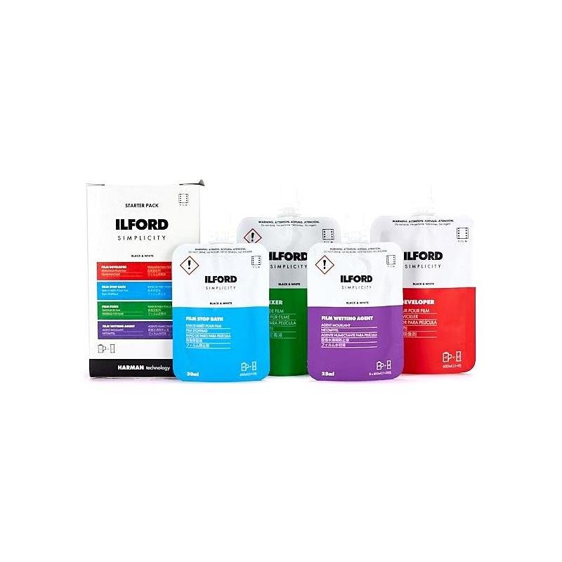 982812323Revelar en Casa Nunca Fue Tan Fácil: Olvida las básculas, las probetas complicadas y las botellas gigantes que se estropean antes de usarlas. El Ilford Simplicity Kit contiene todo lo que necesitas para revelar tus primeros carretes en cómodos sobres monodosis. Es tan sencillo como "Abrir, Mezclar y Usar".