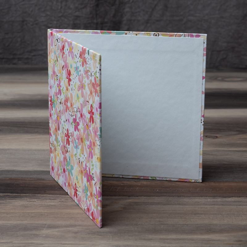 Carpeta con tapa dura de tamaño 15x15, en el interior trae un despegable para 4 fotos frontales y 4 traseras, un total de 10 fotosTambien si se queire aprovechar las contratapas se puede sumar 2 mas.