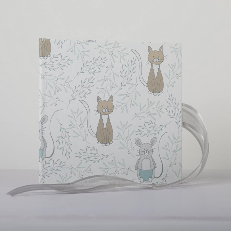 Recordatorio tapa dura en papel italiano con dibujos , tamaño 15x15se sirve con Bolsa Papel a juego con un Lazo de color.liquidacion, ultimas unidades.