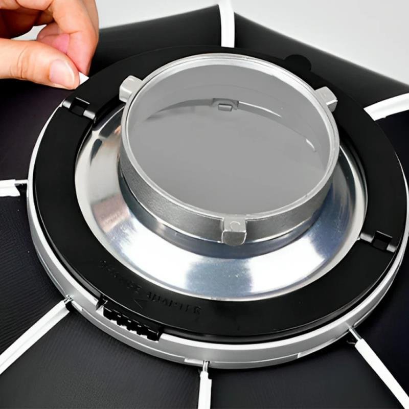 Rotación ajustable: Permite rotar la Speedbox para un posicionamiento óptimo de la luz durante las sesiones fotográficas.