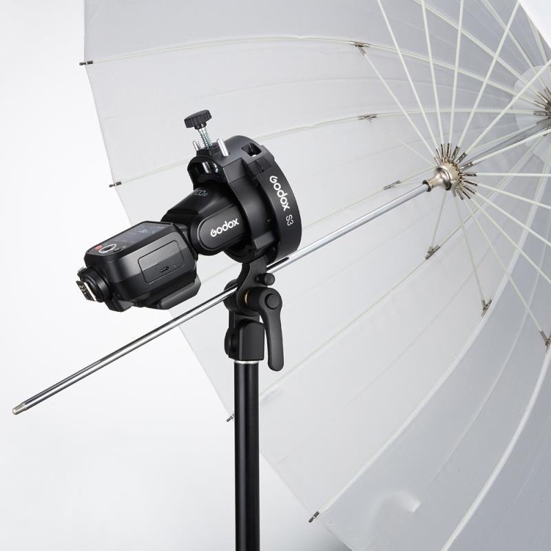 Atrás quedaron los montajes complicados y los plásticos frágiles. El sistema Godox S3 sujeta el flash de forma segura por el cuerpo, liberando la zapata y evitando cualquier tensión sobre la conexión electrónica. Su sistema de sujeción con almohadillas de goma protege la carcasa de tu flash contra arañazos, garantizando un agarre firme incluso cuando utilizas ventanas de luz (softboxes) de gran tamaño o reflectores pesados en exteriores.