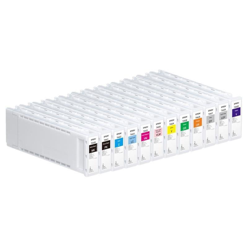 Los cartuchos de la serie Epson T44J ofrecen una capacidad de 700 ml de tinta pigmentada UltraChrome PRO 12. Es el formato ideal para usuarios de las impresoras SureColor SC-P7500 y SC-P9500 que tienen un volumen de trabajo medio-alto y buscan maximizar la rentabilidad de su negocio.