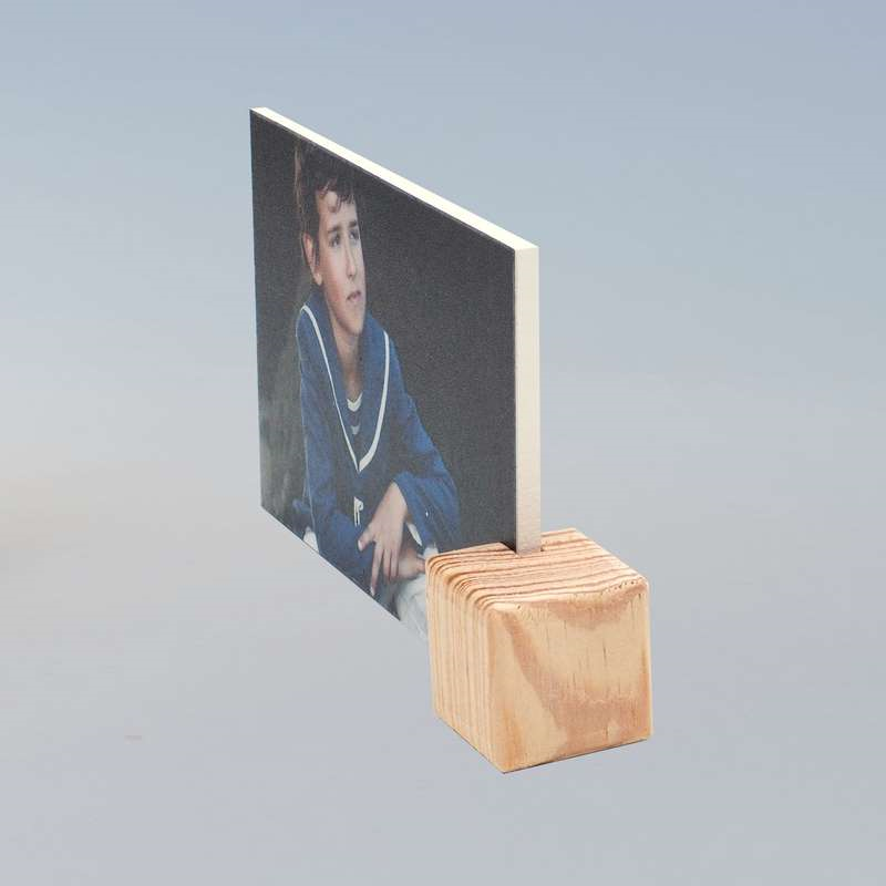 Trasera blanca con base de taquito de madera personalizado con motivos varios.
