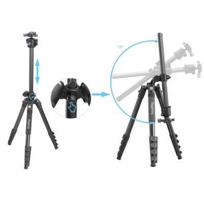 Construido con una aleación de aluminio de alta densidad, el CT25 ofrece una robustez excepcional sin comprometer la movilidad. Su característica estrella es la columna central que puede rotar 360 grados horizontalmente y ajustarse en vertical, permitiendo desplazar la cámara fuera del eje central del trípode para evitar que las patas aparezcan en el encuadre durante tomas picadas.