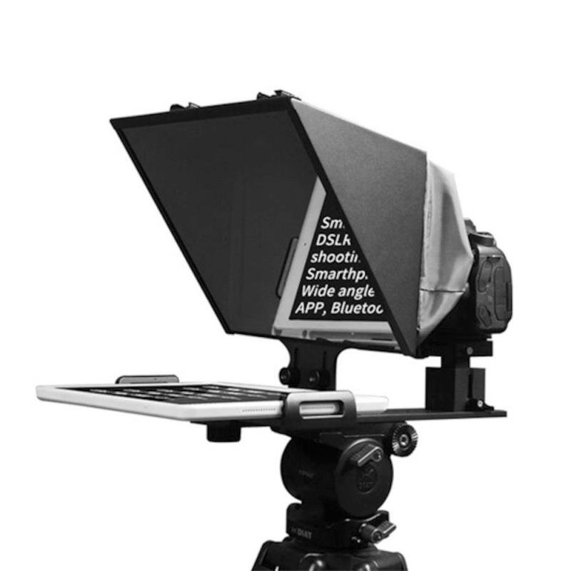 En González Almacén Fotográfico te asesoramos para combinar el teleprompter FEELWORLD TP13A con tu cámara, trípode, micro y luces, y montarte un set completo de vídeo para tu empresa, canal o academia.